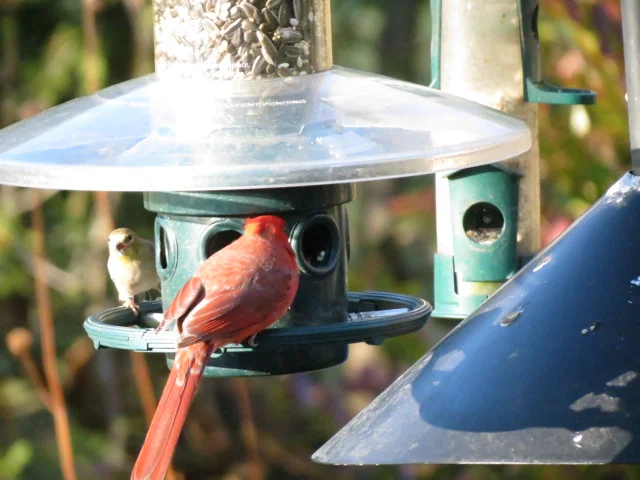 Male Cardinal & Goldfinch visiting the Squirrel Buster Plus