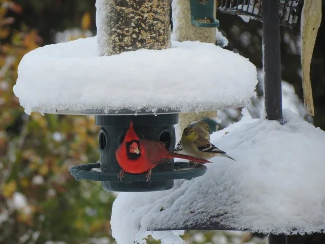 It's truly amazing to have the beautiful birds visiting the garden and the bird feeders! Add a little snow and some cooler temperatures....you never know who might show up! This past week, the ground was covered with snow and the evening lows below zero celsius. We were rewarded with several beauties and many feeder visits....outdoor entertainment can't get much better than that during autumn in Canada! Drop by to check out our selection of bird feeders, bird seed and all the accessories you'll need to welcome the birds to your garden!!