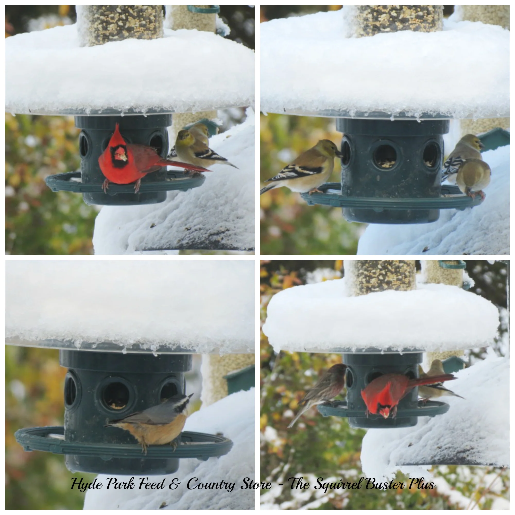 Cardinal & Goldfinches on the Squirrel Buster Plus with Weather Guard (sold separately)