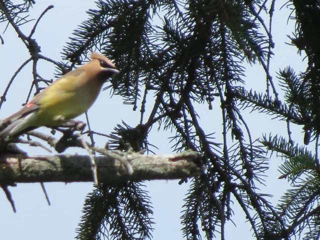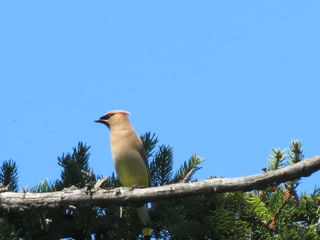 A second shot of the Cedar Waxwing in the pine tree...they really are stunning birds!!