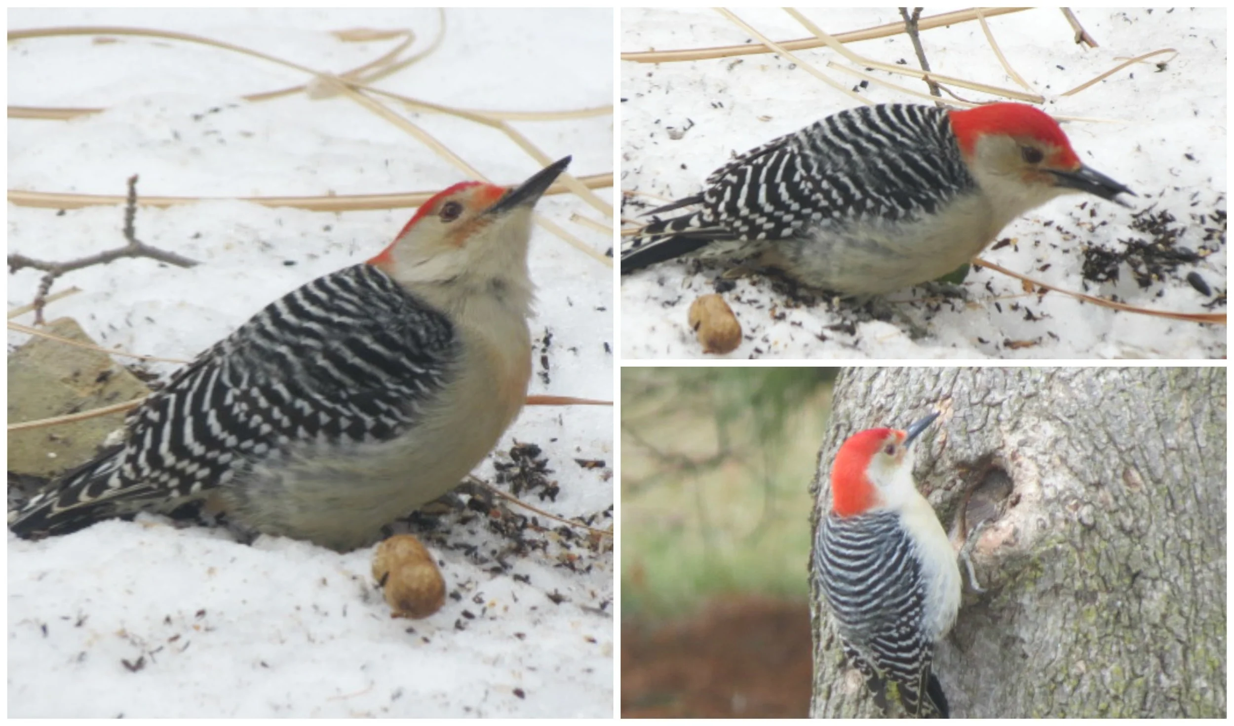 Red-bellied Woodpecker....on the ground & on a tree!
