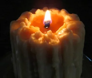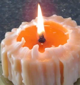 When the wax pool nears the edges and the wax near the candle wall is softened, carefully push the wax toward the wick, thus raising the wax pool. You can burn the whole candle & not be left with a large chunk of wax!!