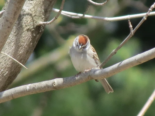 Cute Chipping Sparrow arrived a few days before the White-throated Sparrows