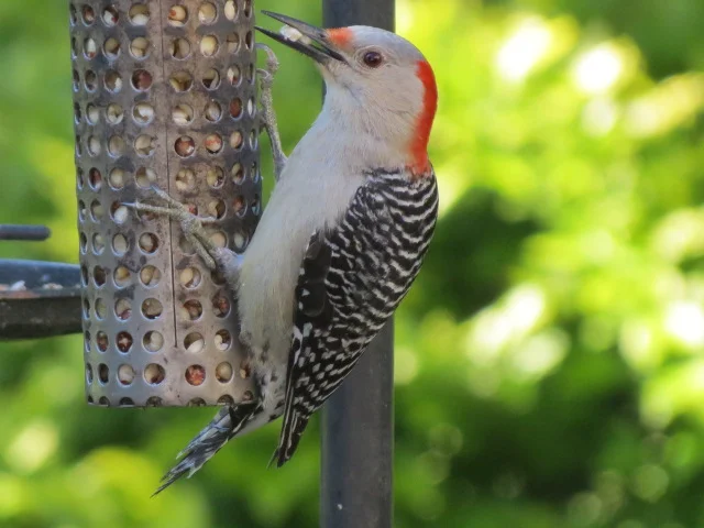 No matter how many times we are blessed with visits from the Woodpeckers, they never disappoint! The Red-bellied Woodpeckers are no exception! Yesterday, both the Male & Female Red-bellied Woodpeckers were visiting our peanut feeders providing some excellent entertainment! Don't you just love their colouring? Their vibrant red heads, the mixture of colours on their bodies and that splash of red on their bellies - stunning birds! Bring the beautiful Woodpeckers in to your gardens with peanuts....they love them!! Suet blocks are also a favourite!
