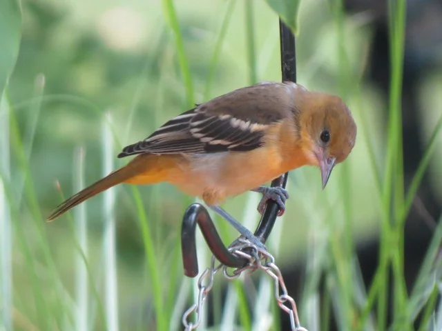 Baltimore Orioles are still putting on a show, visiting quite often! We just love their antics & fun at the feeders as well as in the trees & shrubs surrounding the feeders. One can hear their calls, their squawks for food, although most of the young have figured out the feeders by now. One Oriole was having a huge splash this morning in one of our bird baths...first time we've captured that scene!! We've had customers share their pics along with thanks for our suggestions for nectar or jelly feeders....they are loving the fun as much as we are ~ Thank you all for your support, so glad we could help!!