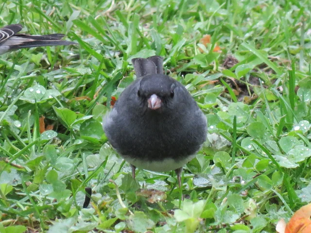 We looked out the window this morning and what did we see? Juncos are here! Juncos are here! After spending their summer north of our location, the Dark-eyed Juncos have returned to spend the fall & winter season with us! They are a delight to have around the garden and are a very welcome visitor at or below feeders during the cold winter days.