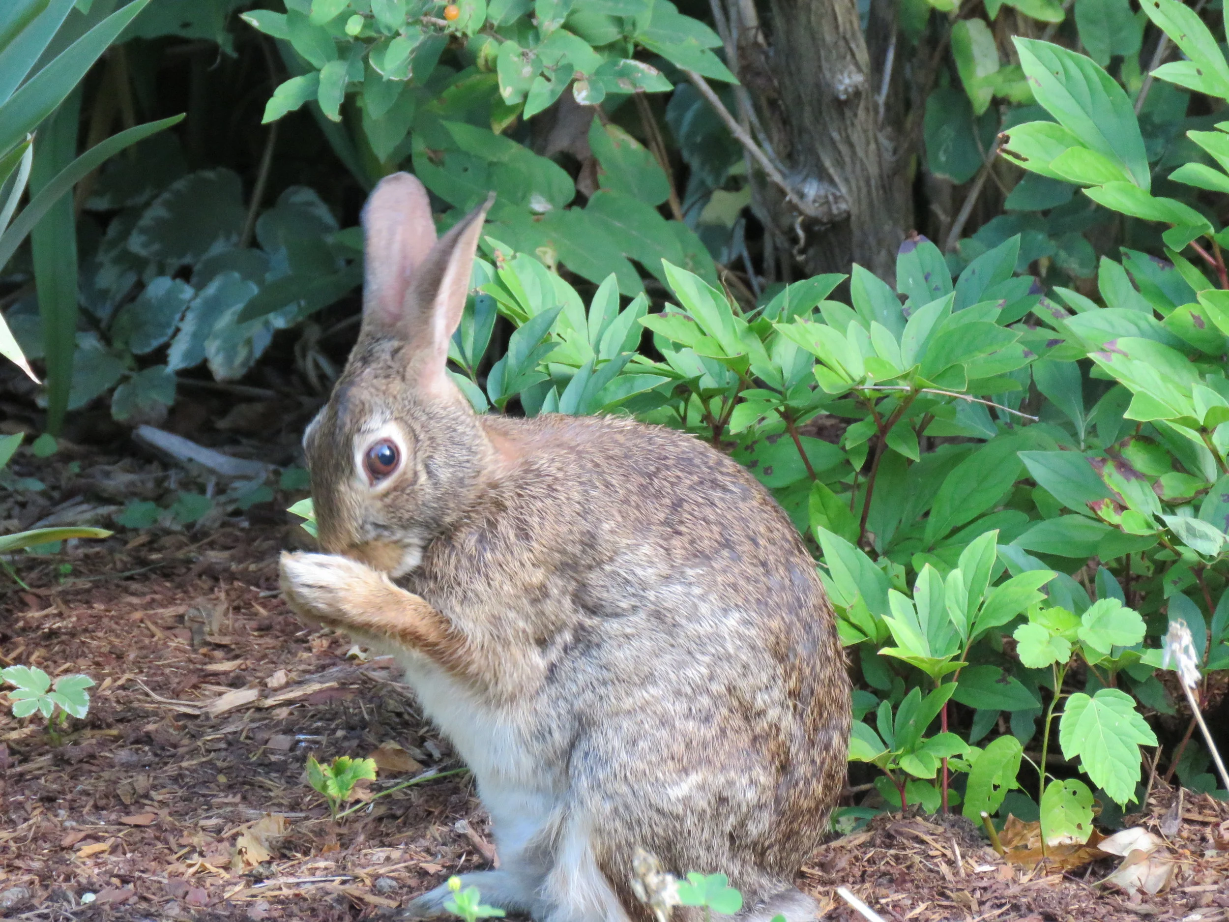 So love watching all the critters around the garden including the bunnies...of every size! All the birds and animals need to take a moment to do some grooming, as was the case with this rather plump-looking Eastern Cottontail!