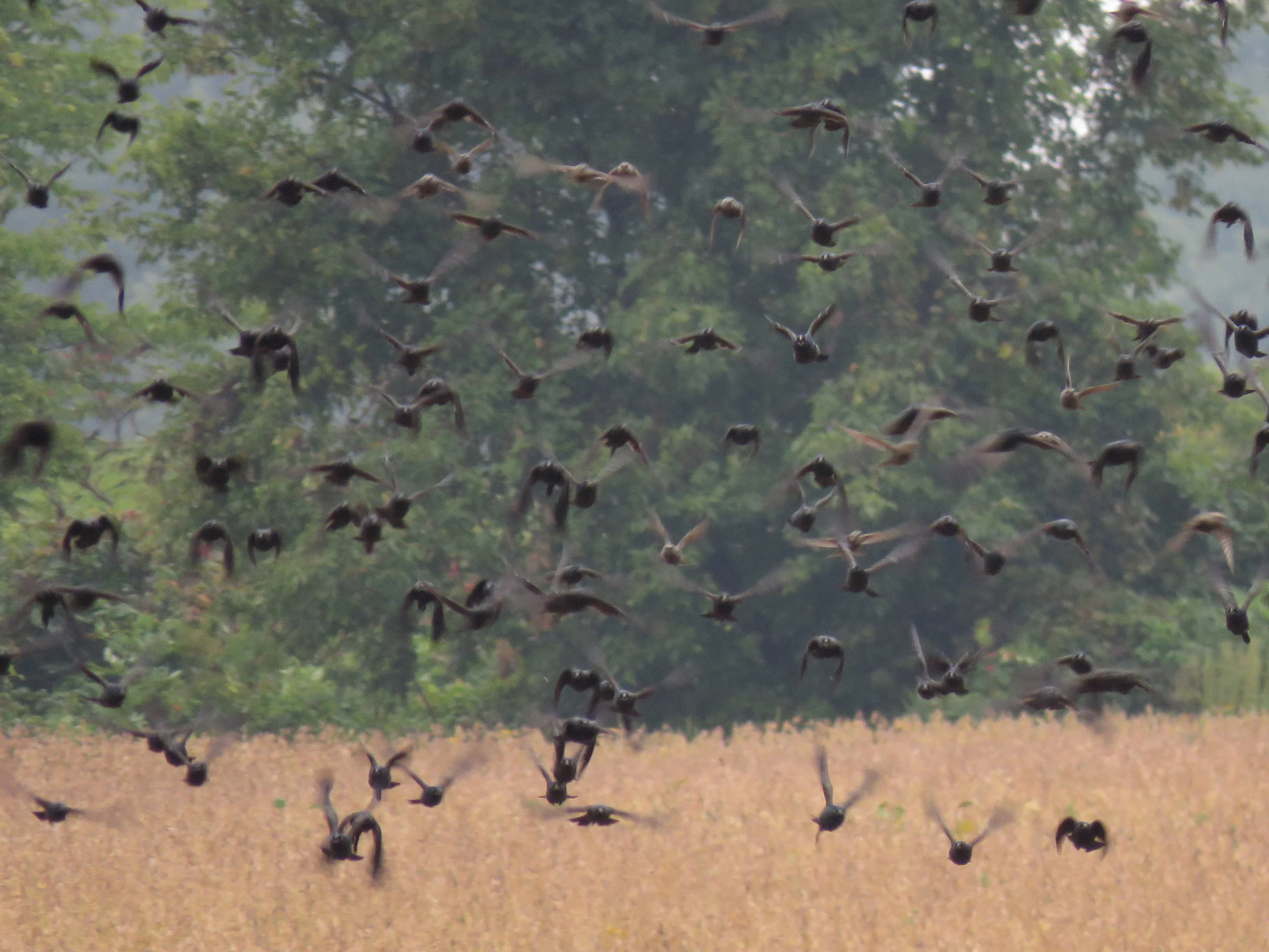 You could be anywhere…traveling down a country road, a city street or enjoying the fall season in your garden! Look to the sky, the trees, the fields, the lawns, the hydro lines…and listen; listen to the chatter! At this time of the year, “blackbirds” are gathering in extremely large flocks and it is so amazing to see! If you’re lucky, you might see an awesome murmuration!! Earlier this week, we had very large numbers of Grackles around. There could have been others mixed in as they often migrate together!
