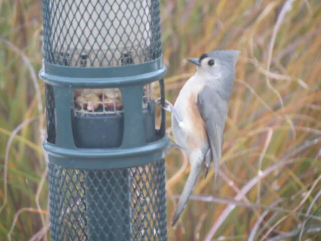 Tufted Titmouse enjoying peanuts from our Squirrel Buster Peanut Feeder!