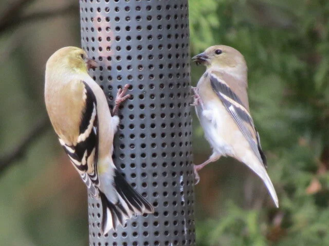 For quite some time, customers have been wondering where ‘their’ American Goldfinches have gone. There always seems to be plenty of food in the wild for many of everyone’s favourite feeder birds…and the Goldfinches are no exception! As their food sources become depleted, they should return to feeders…we had a few Goldfinches around our feeders yesterday!. If you are not seeing many of them around, we recommend that you not totally fill your nyjer feeders….no use wasting good seed that may become damp, especially during these rainy days!