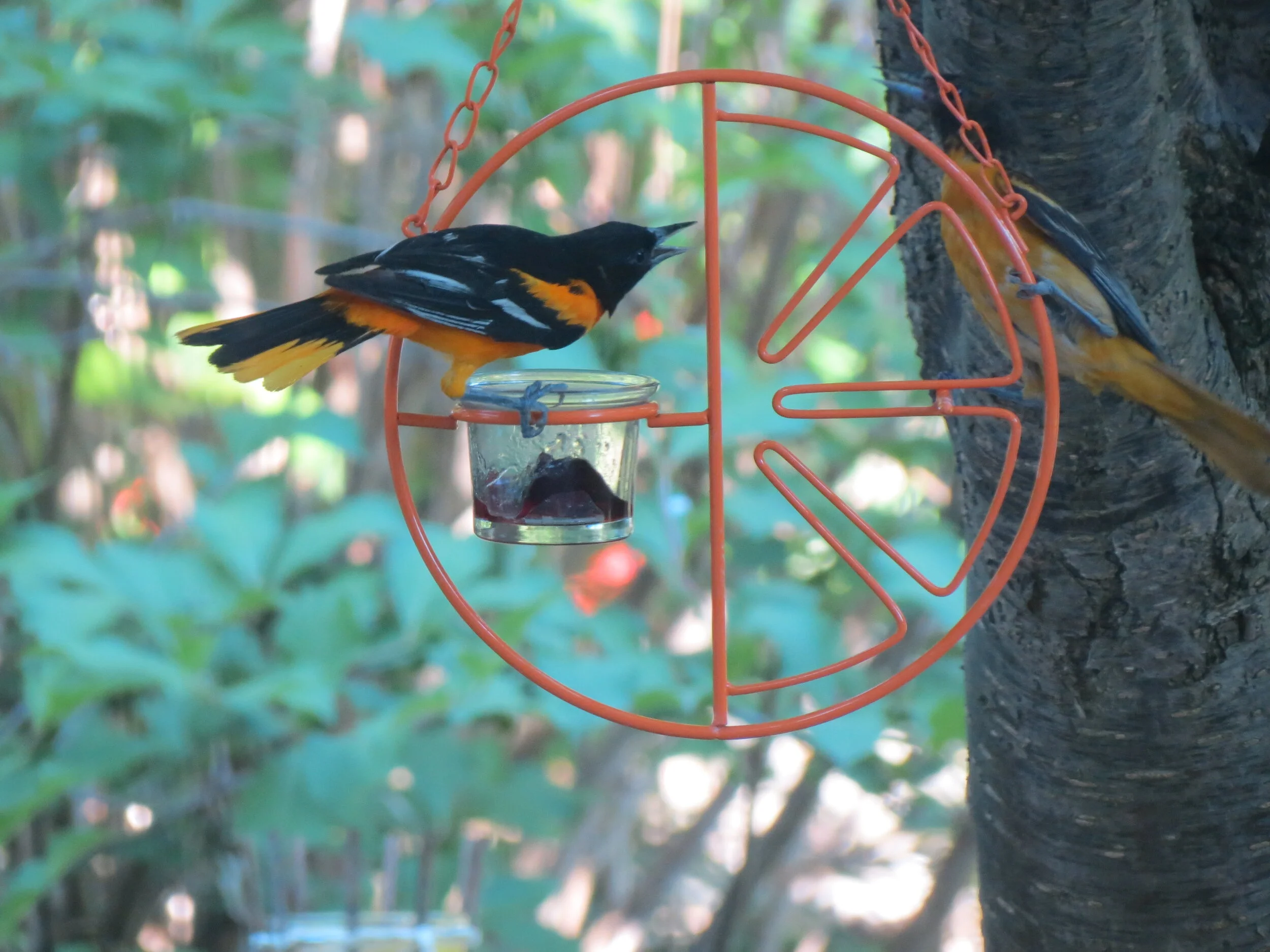 A FEW MORE ORIOLE VISITS - FLEDGLINGS SHOULD ARRIVE OVER THE NEXT WHILE!