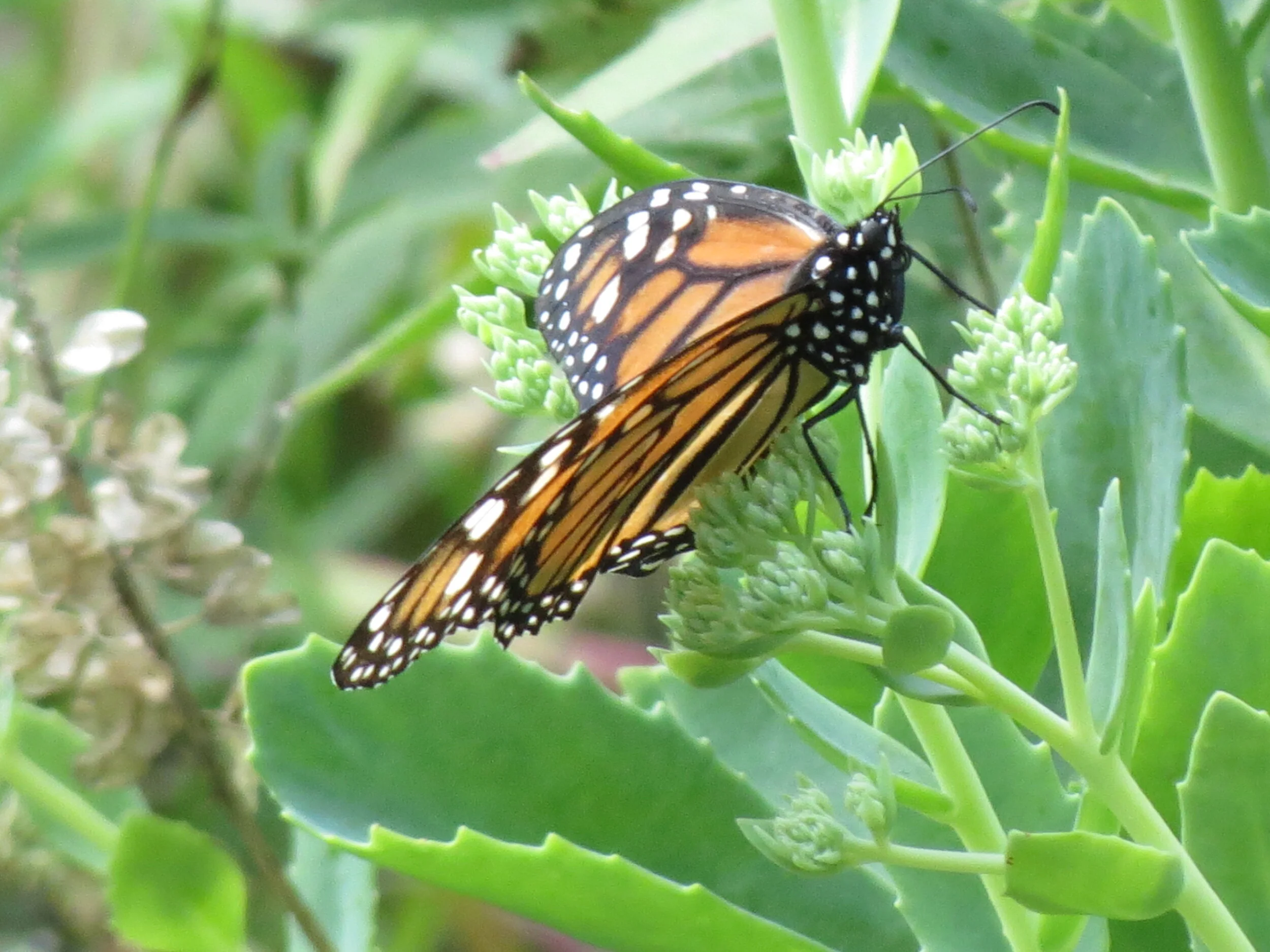 Are you noticing Monarch Butterflies in your garden? Do you have a patch of milkweed for them? We had one flutter through our garden a couple of weeks ago and then this one, this week! Finally got a few shots…sometimes they don’t sit still for long!