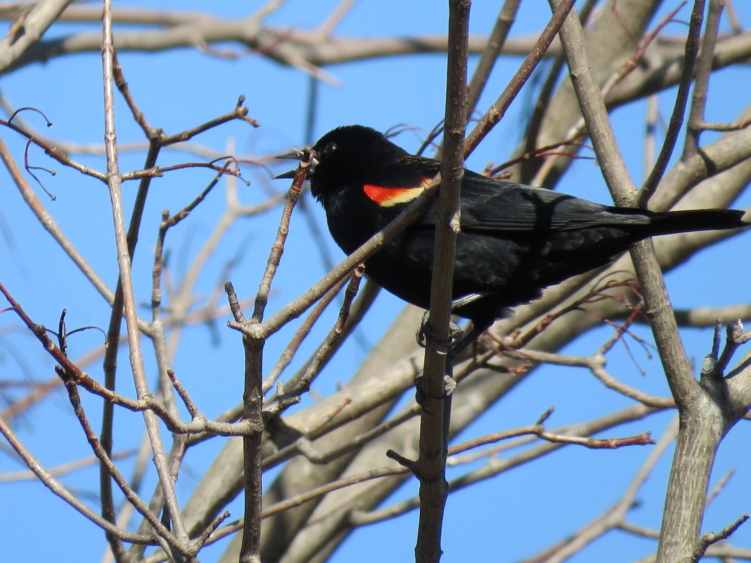While some of you reported Red-winged Blackbirds over the last week or so, ‘our’ first arrivals were serenading us early yesterday morning! What a joy to have them back….many consider them the first sign of spring!